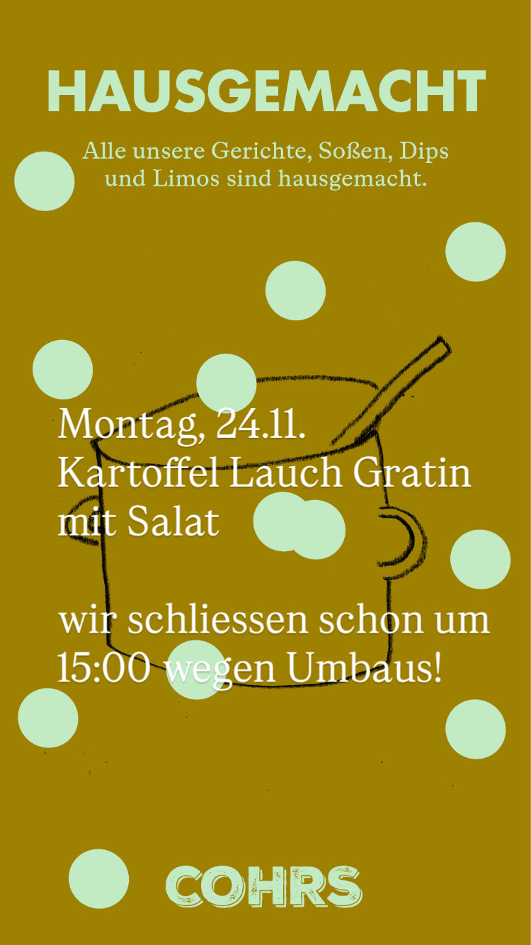 Morgen ist geschlossen Wochenkarten vom 24.11. bis 28.11.