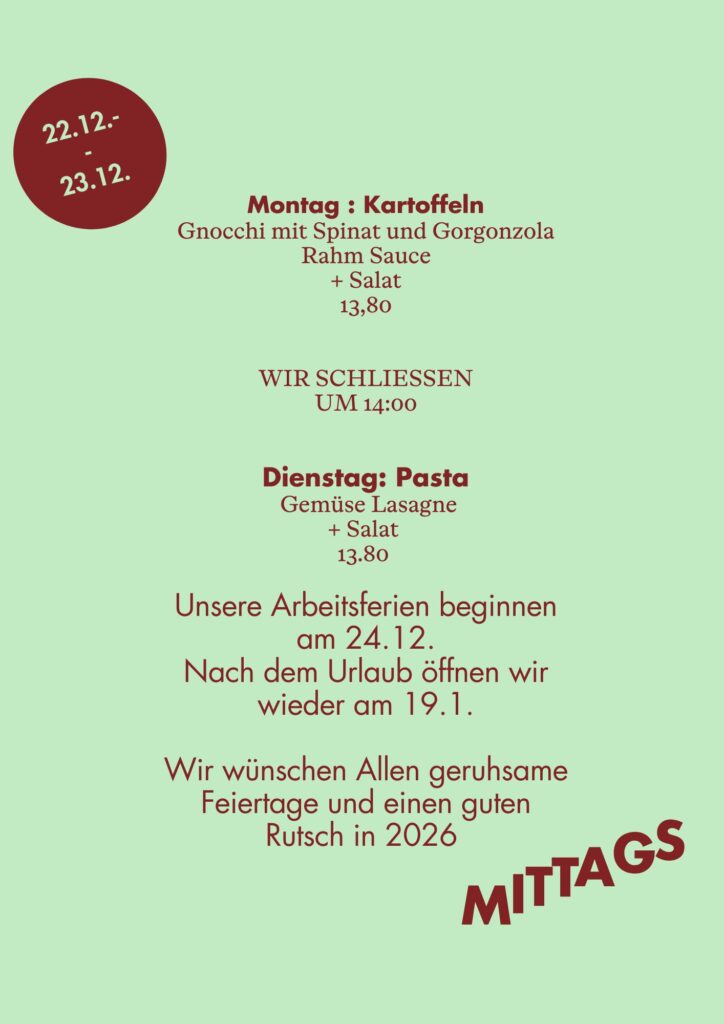 Wochenkarte 22.-23.12. Danach sind Ferien bis zum 19.1.