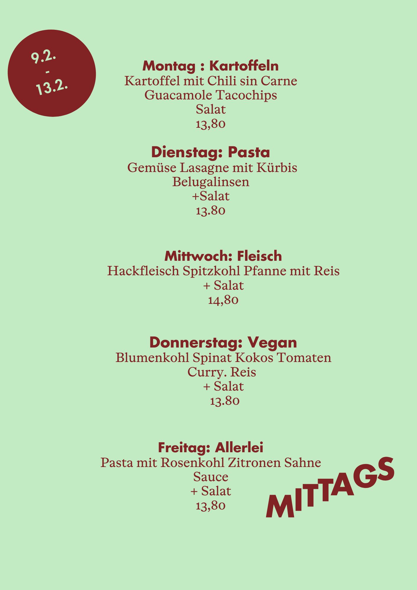 Wochenkarten 9. -13.2.